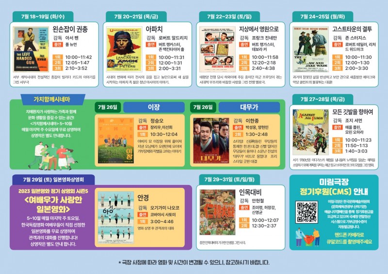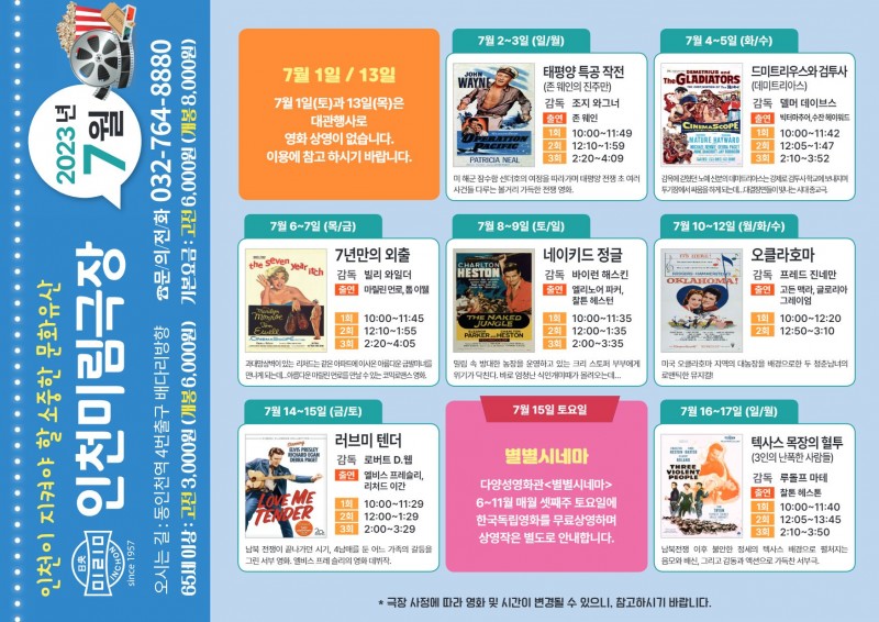 2023년 7월 고전영화 상영작 페이지 정보 작성자 미림극장 작성일23-06-27 15:15 조회715회 댓글0건 목록 본문 7월 고전영화 상영작 댓글목록 등록된 댓글이 없습니다. 목록
