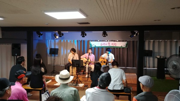 추억극장 미림이 천개의 문화오아시스 조성지원사업의 도움을 받아 조성한 음악의 숲 미림의 개관공연이 7월 28일 토요일 오후 3시에 열렸습니다! 지리산에서 올라온 청정밴드 빈둥밴드가 개관을 축하하며 멋진 노래들을 들려주었답니다. 마침 미림의 대표 하모니카 연주자인 박주영 선생님께서 공연소식을 듣고 오프닝무대를 맡아주셨어요. (감동ㅠ) 앞으로도 이 공간은 프로와 아마추어의 구분 없이 다양한 공연이 올라갈 예정입니다. 많이 많이 찾아주세요!