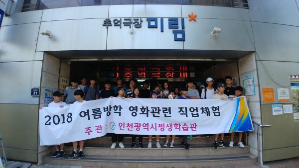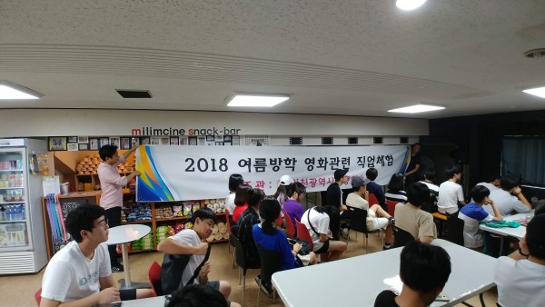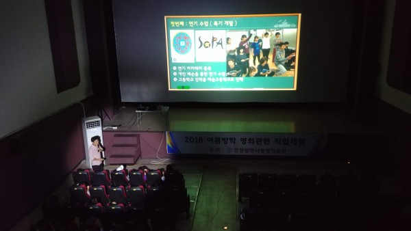 2018 여름방학 영화관련 직업체험(인천시평생학습관 주관) 페이지 정보 작성자 미림극장 작성일18-09-05 20:02 조회1,167회 댓글0건 목록 본문 8월 13일 월요일 오전 10시부터 오후 1시까지40명 남짓의 청소년들이 미림극장을 찾아와영화배우 전재성, 애니메이션감독 이용선 선생님이 가지고 있는영화관련 직업 노하우에 대해 이야기를 듣는 시간을 가지고 갔답니다. 목록
