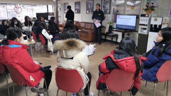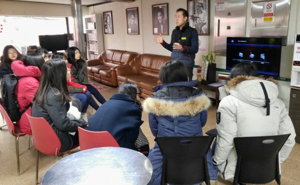 진로체험학습 페이지 정보 작성자 미림극장 작성일16-12-14 20:53 조회1,628회 댓글0건 목록 본문 신흥여자 중학교 1학년 학생들이 진로체험 학습으로 미림극장에서 고전영화도 감상하고 최현준 운영부장으로부터 고전영화에대한 설명을 듣고있다. 목록