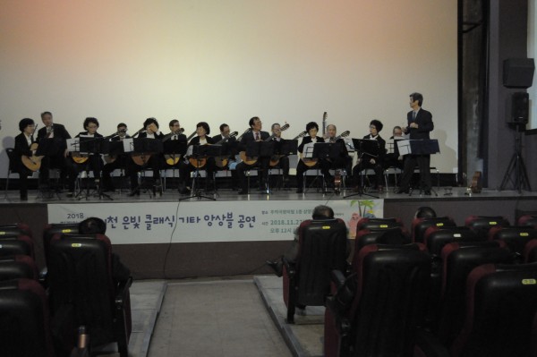 문화오아시스 공연(기타앙상블) 페이지 정보 작성자 미림극장 작성일18-11-30 17:02 조회1,002회 댓글0건 목록 본문 인천노인종합문화회관 클래식기타 동아리 회원분들이 미림극장을 방문하셨네요.로맨틱하고 달콤한 클래식 기타의 선율에 흠뻑 빠져봅니다.^^ 목록